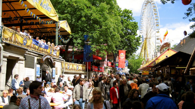 Along the Burgberg (the mountain’s name), not only beer cellars, but also 90 stands can nowadays be found on the funfair and numerous takeaway counters follow one another. A beer pint is much less expensive – and the open-air beer gardens in the shades of chestnut trees make for a cozier atmosphere than the gigantic, overheated and steamy tents at Munich’s Oktoberfest.