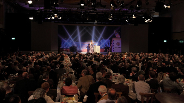 Le point culminant de la soirée consiste en un spectacle-cabaret appelé „Politiker-Derbleckn“, une satire politique en forme d’opérette spécialement écrite pour l’occasion, faite d’imitations et de caricatures, et offerte en présence de ses « victimes », invités de haut rang. Ne faire l’objet d’aucune moquerie lors de cette soirée peut toutefois signifier pour un politicien bavarois – quel que soit son parti d’attache – qu’il n’a pas assez de poids voire une trop faible personnalité…
